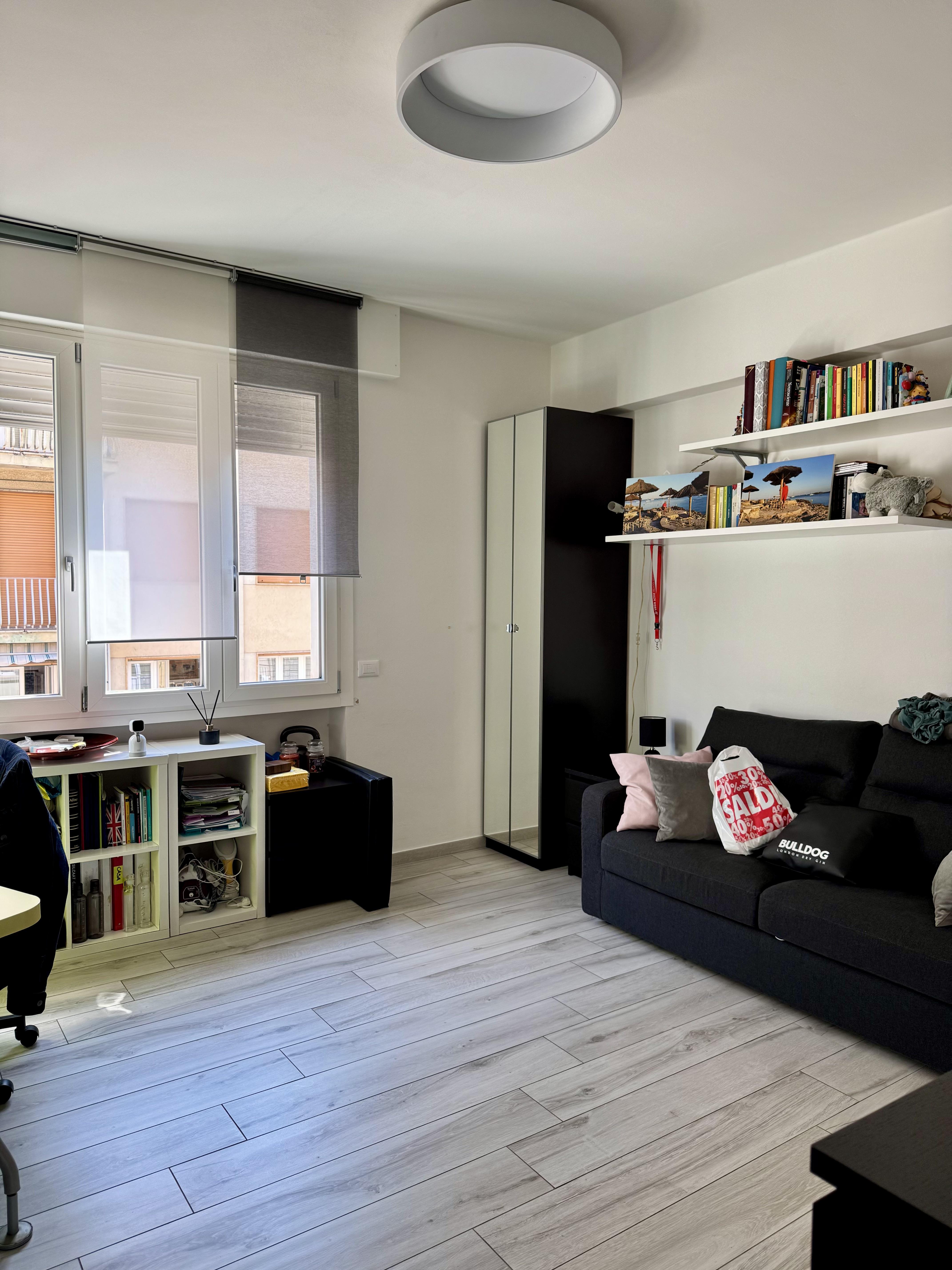 Salotto molto ampio, ideale come zona living, con affaccio su un balcone lato strada principale.